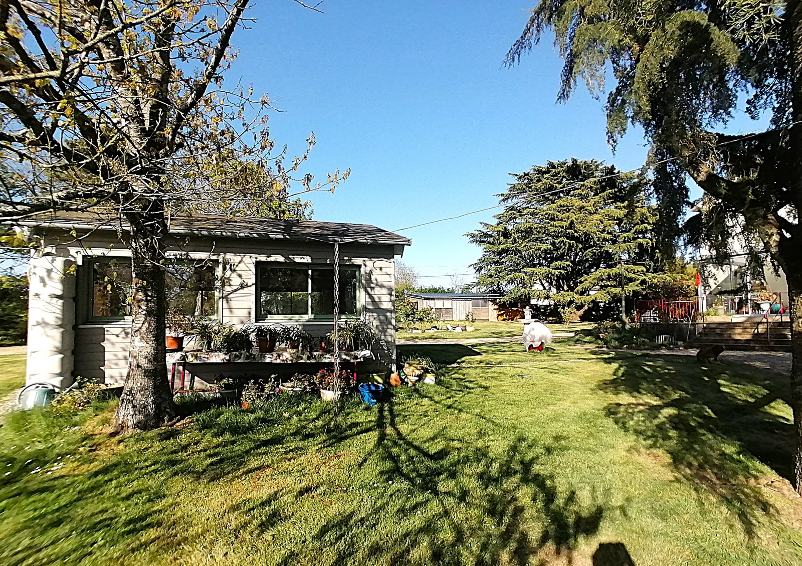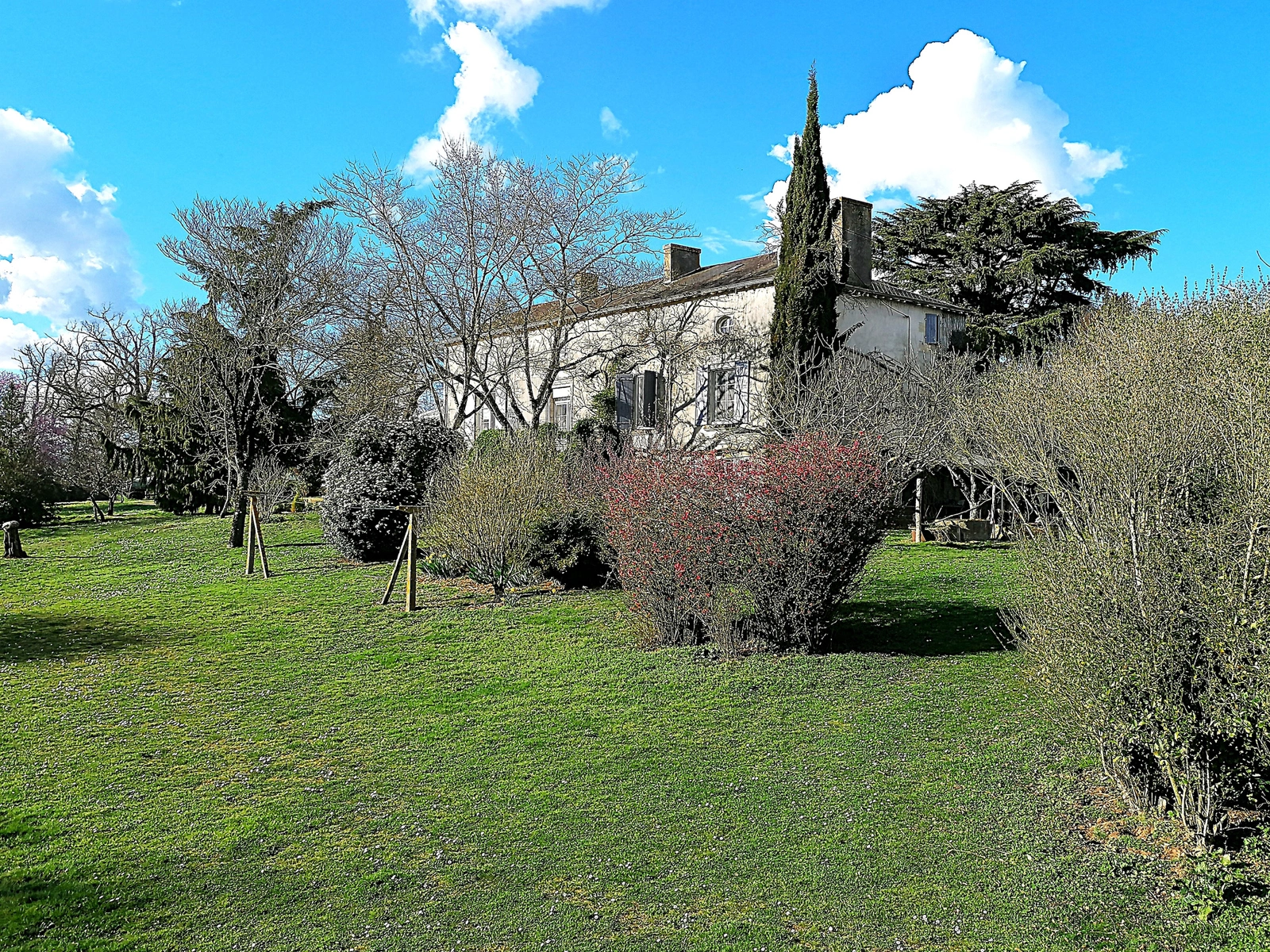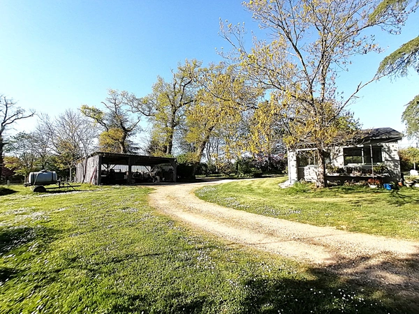 Le tout s'ouvre sur un grand terrain clos et arboré, agrémenté :