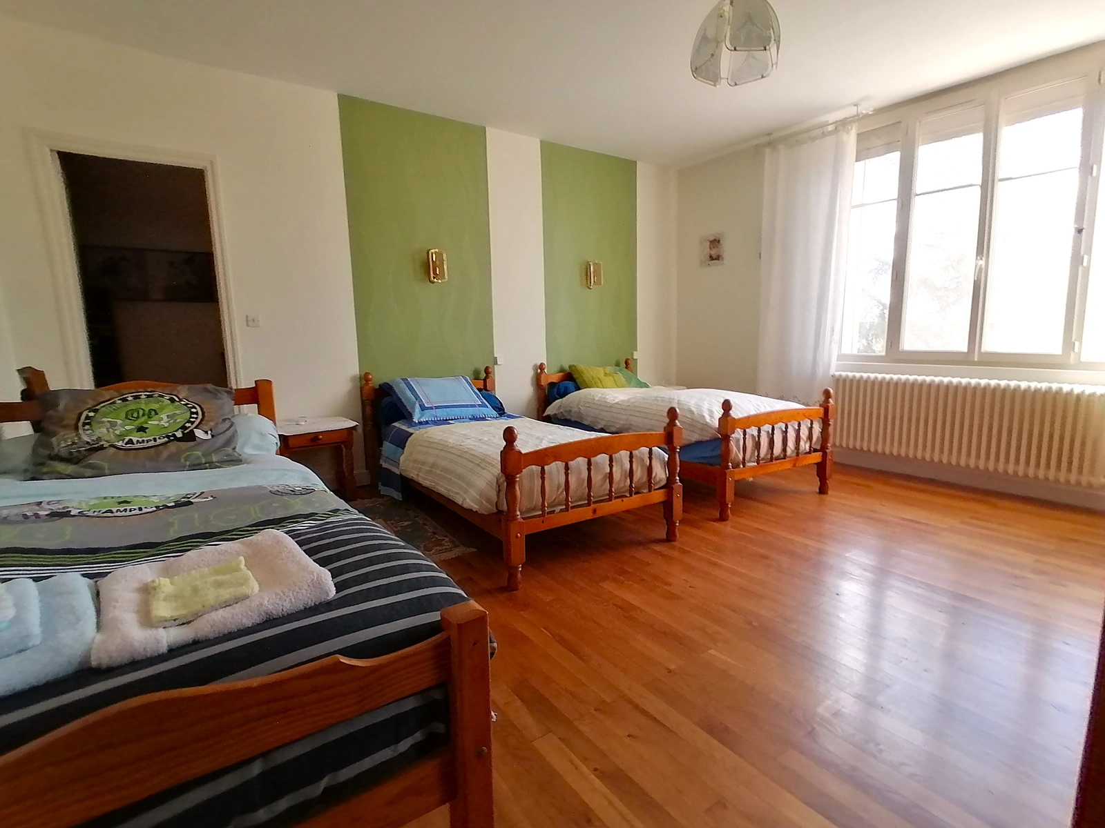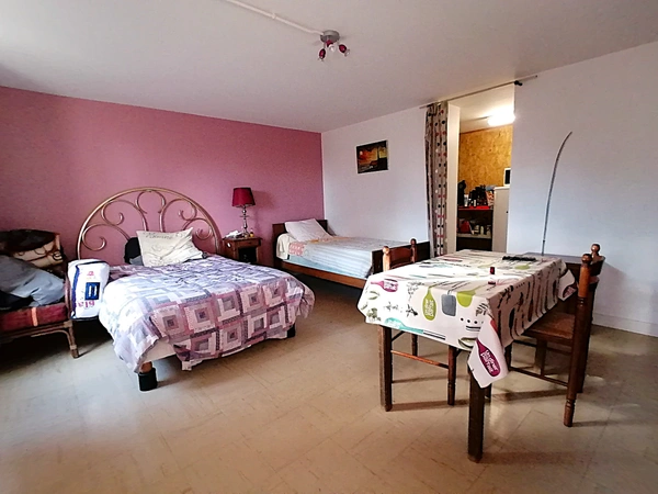 À l'étage : un couloir distribue quatre chambres, dont une avec salle de bain privative, une salle d'eau et un WC séparé.