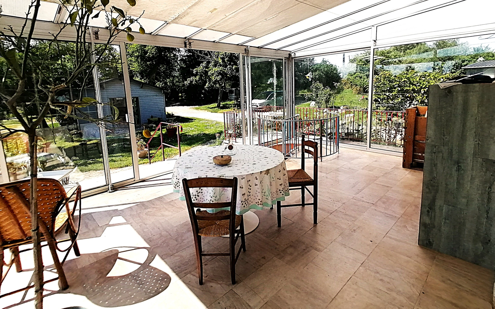 Et d'un grand appentis idéal pour abriter plusieurs véhicules ou fourgons.
